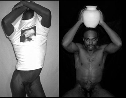 JUAN – AFRO-AM MODEL – IN MAPPLETHORPE T-SHIRT (1993) & GABE – AFRO-AM MODEL – NUDE WITH WHITE CERAMIC VASE (1995) • JUAN GALLERY