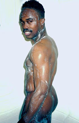 GABE – AFRO-AMERICAN MODEL – NUDE WITH DIAMOND NOSE-STUD SOAPED UP IN SHOWER (1995) • GALLERY